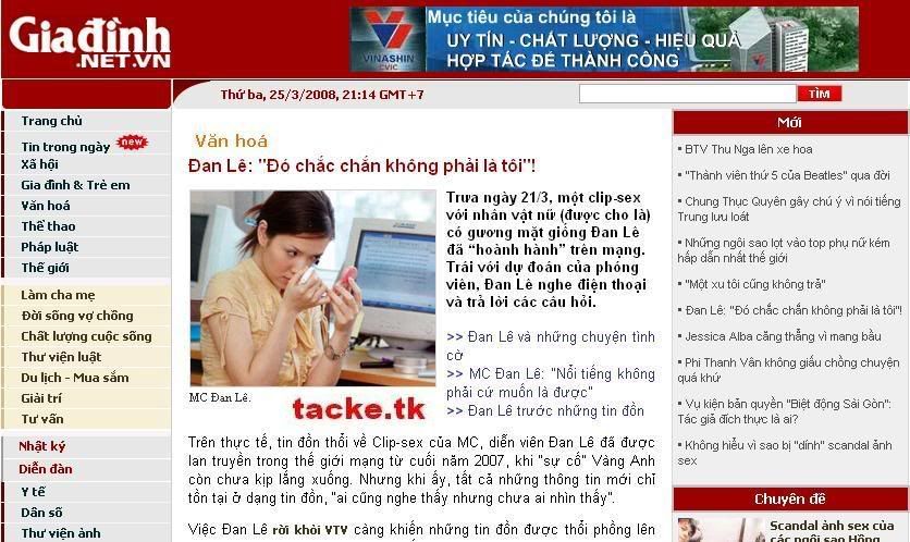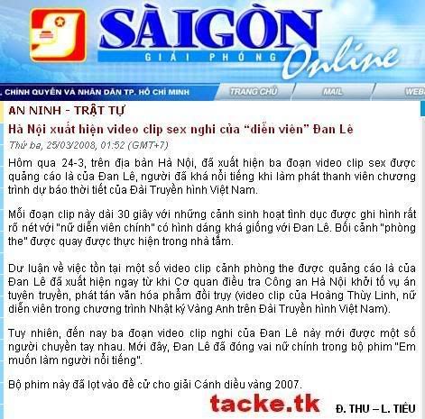 Báo Saigon giải phóng: Hà Nội xuất hiện video clip sex nghi của “diễn viên” Đan Lê.