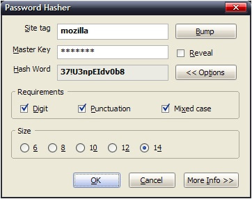 Add-on này sẽ lưu trữ mọi mật khẩu (password) bạn gõ trên các site đã viếng thăm và tự động đăng nhập nếu cần. Password Hasher hoạt động tương tự như các phần mềm thương mại: tự động tạo ngẫu nhiên mật khẩu cho từng website nếu cần, trong khi bản thân được bảo vệ bởi một mật khẩu chính. Bạn có thể sao lưu password vào nơi an toàn, vd như USB nếu cần.